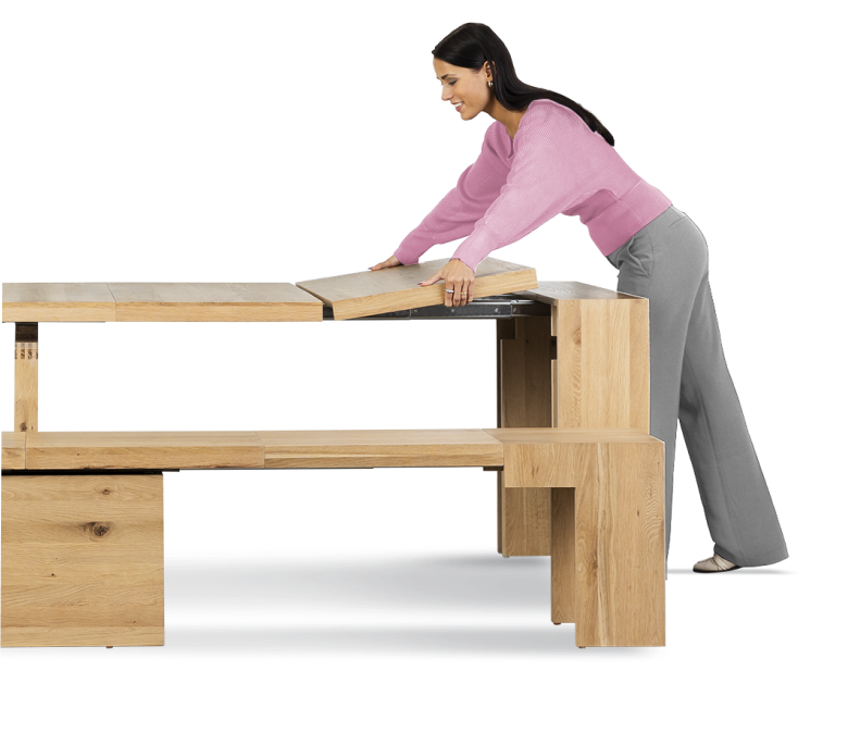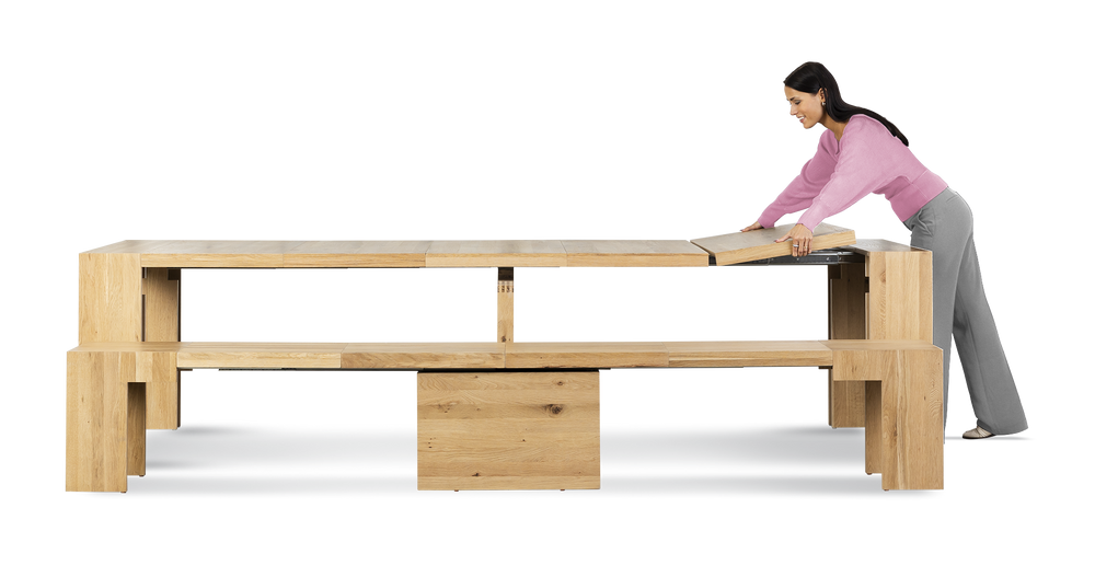 Les tables transformables originales. Ensembles de salle à manger polyvalents et extensibles qui s'adaptent à tout type de maison et de mode de vie. Faites de votre maison un lieu de rassemblement apprécié avec l'ensemble de salle à manger capable de tout faire.