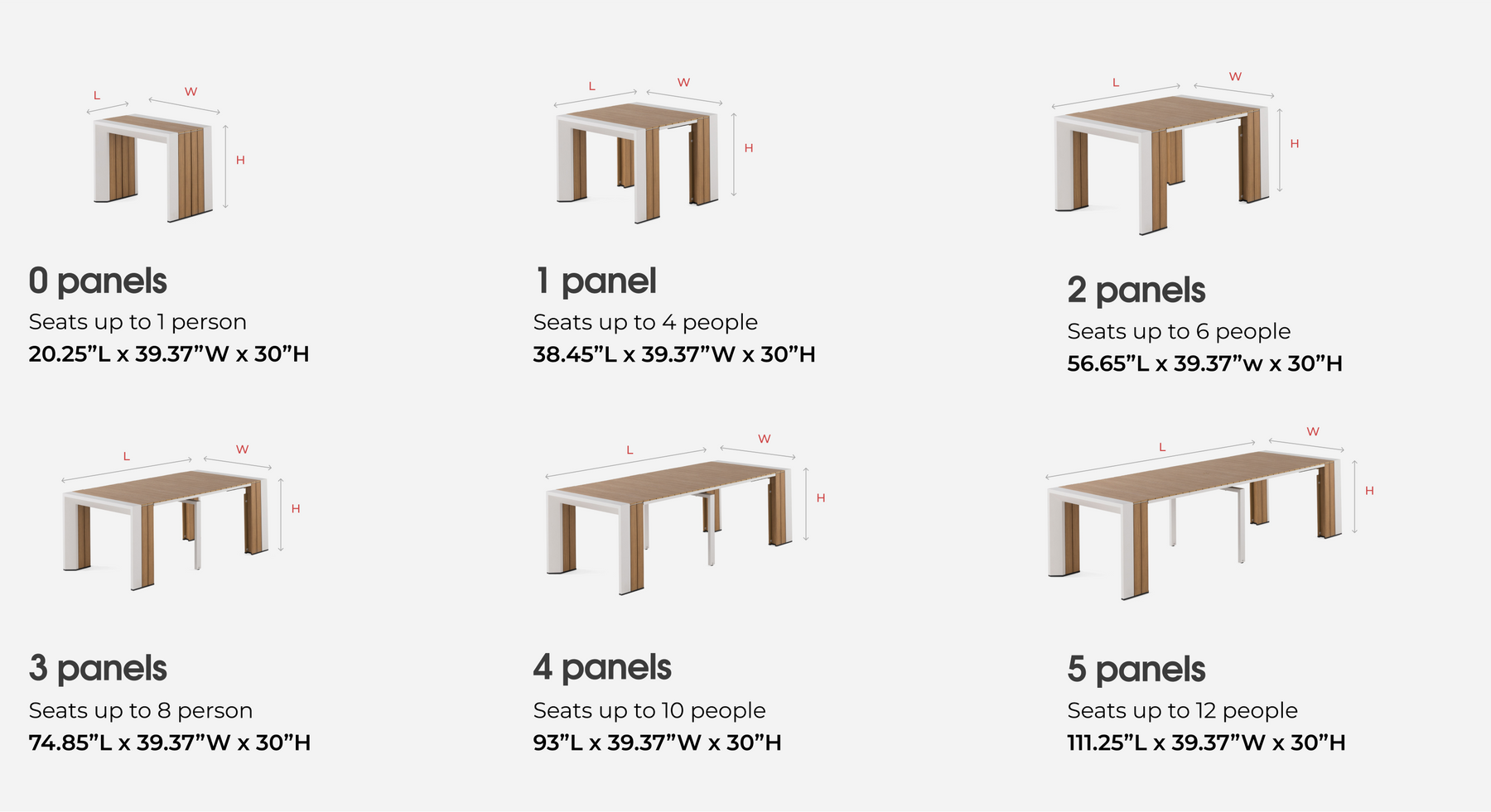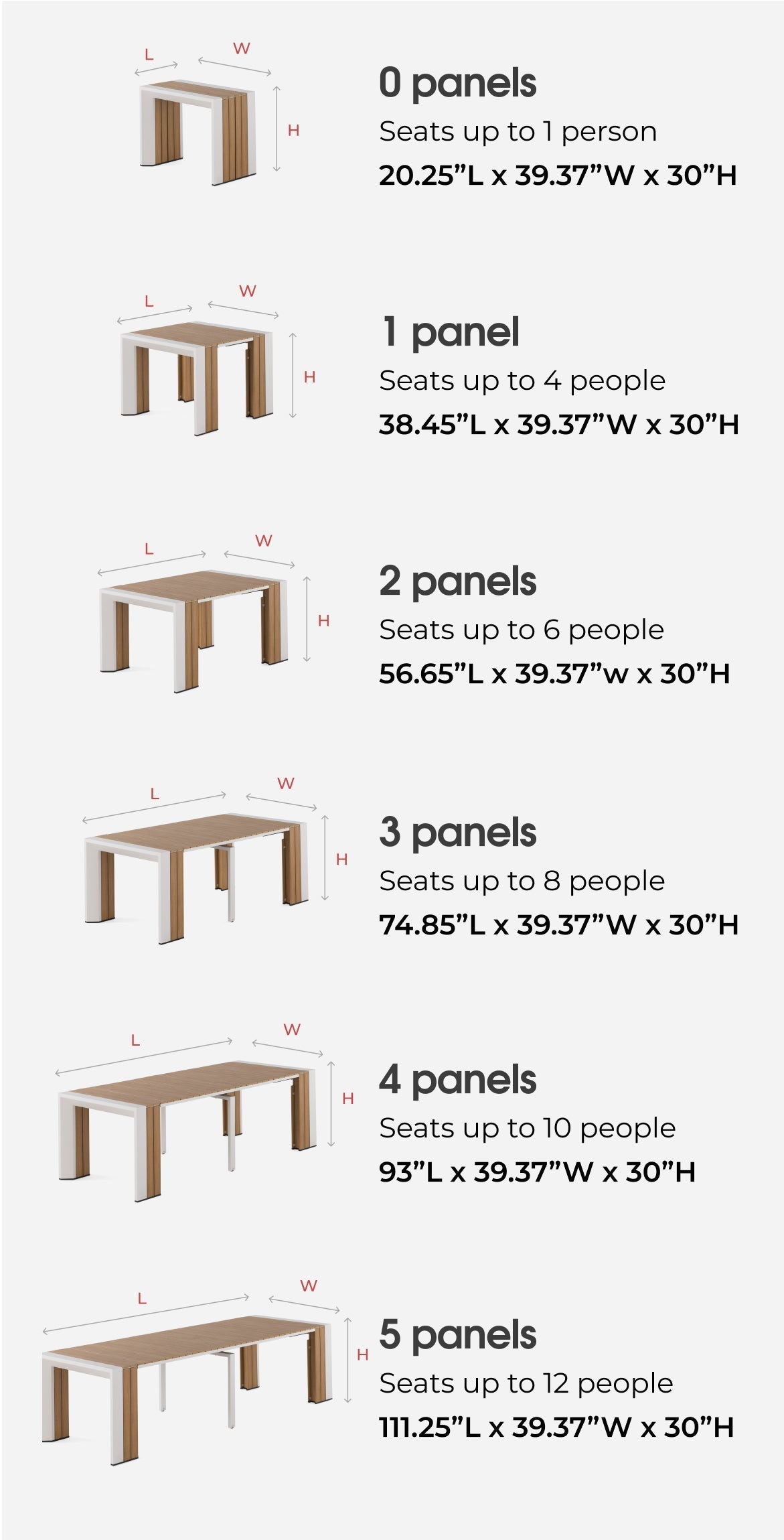Grâce à ses panneaux réglables, la table mesure initialement seulement 50 cm, mais peut s'étendre jusqu'à plus de 2,7 m pour accueillir tous vos proches.