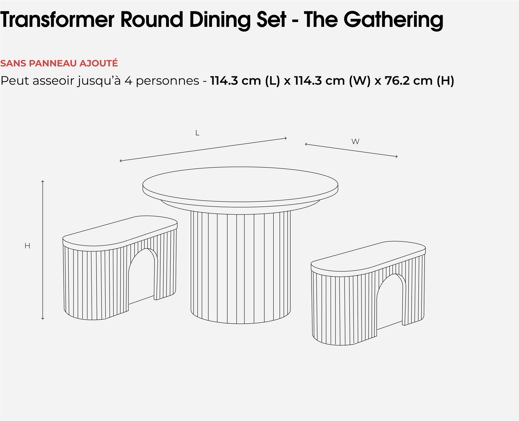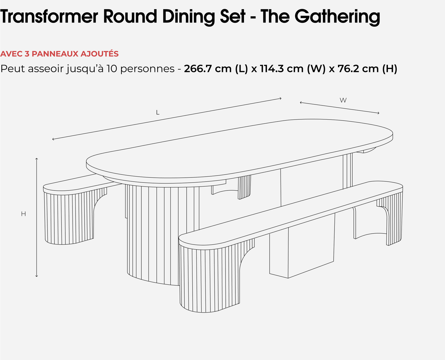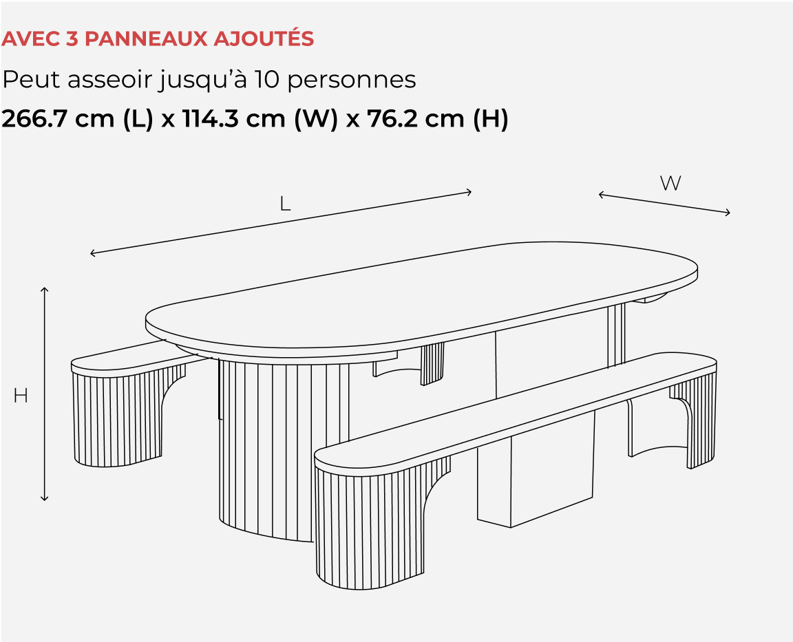 Se transforme facilement d'une table ronde en table ovale pour accueillir entre 4 et 10 personnes.