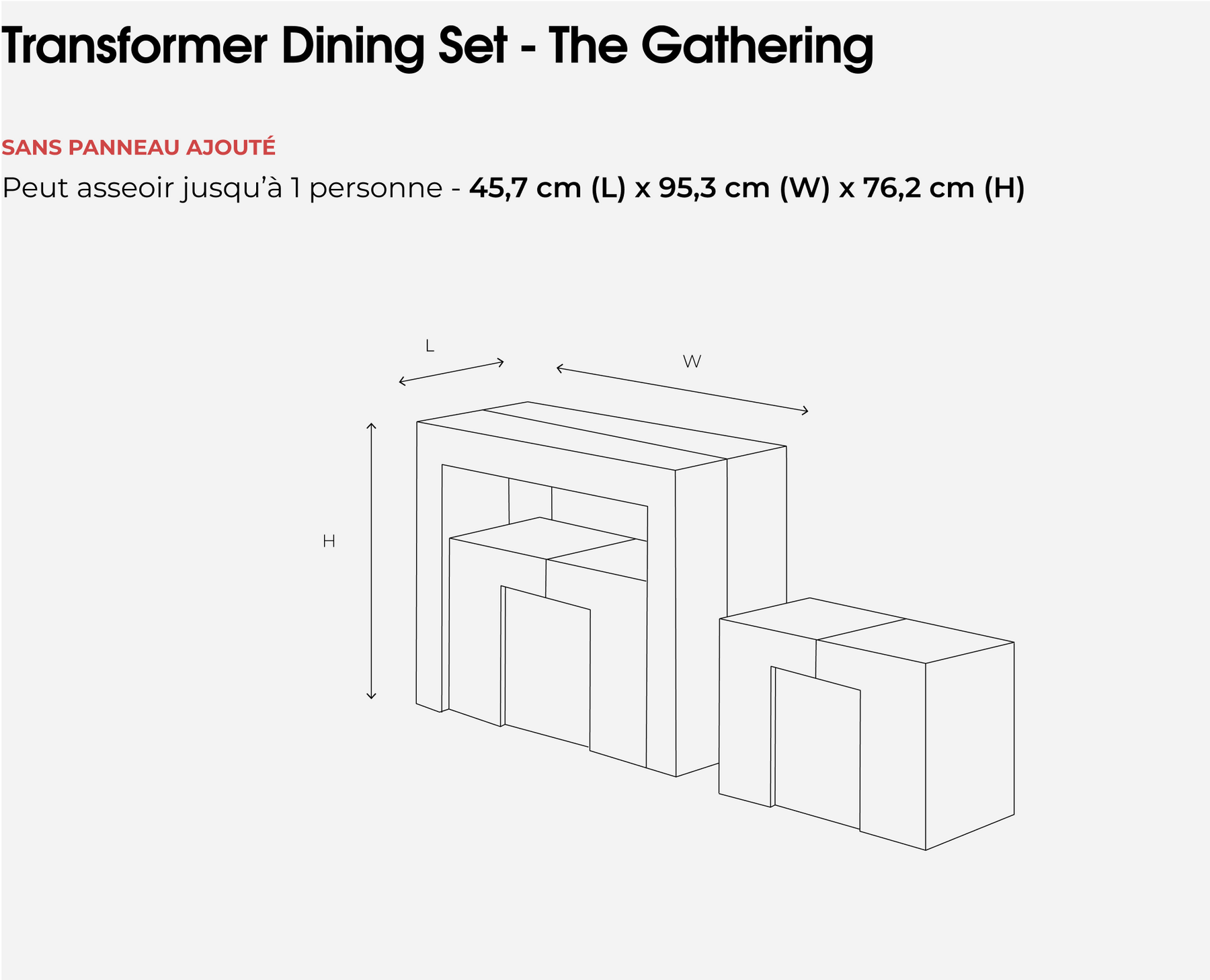 Comme si cela ne pouvait pas être mieux, votre ensemble de salle à manger Transformer est livré entièrement pré-assemblé, vous permettant ainsi de l'utiliser dès sa sortie de la boîte. Aucun assemblage n'est requis.